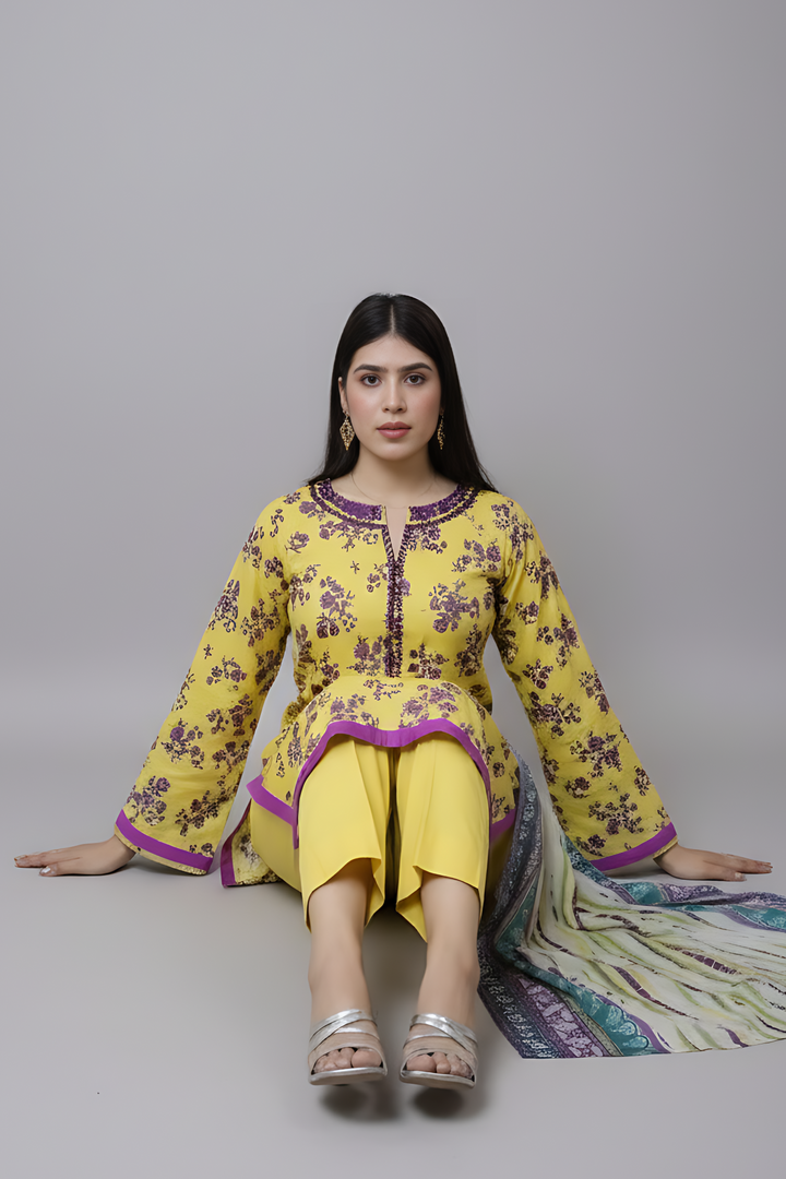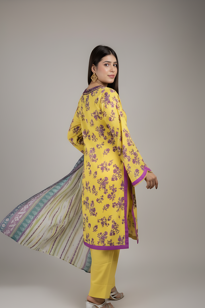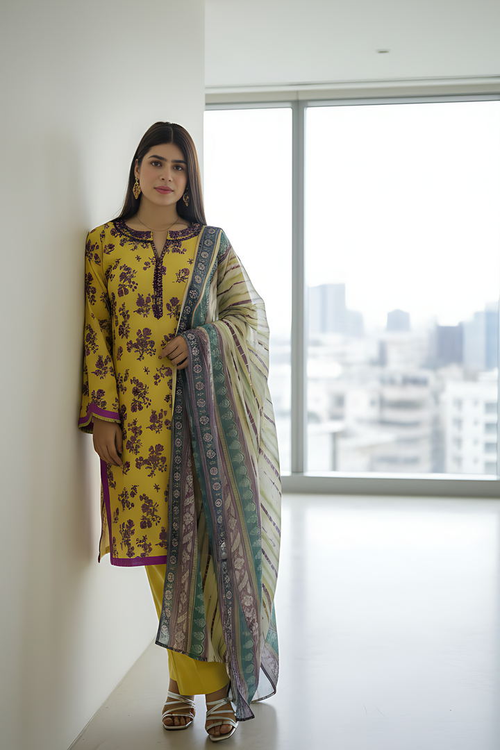 Step into effortless elegance with this beautifully crafted 3-piece unstitched suit — a perfect blend of traditional charm and modern comfort. Ideal for casual gatherings, day events, or everyday wear.