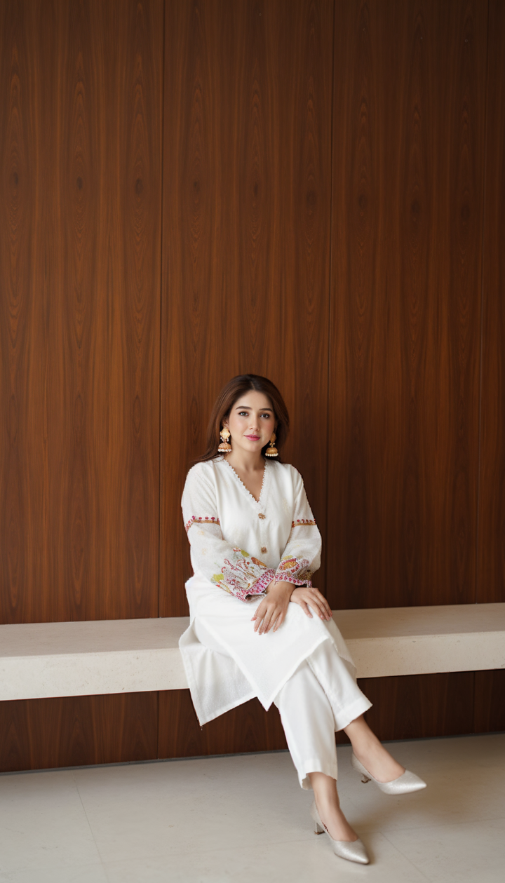Fresh, breezy, and effortlessly elegant — this 2-piece embroidered co-ord set is made for summer days. Crafted from premium imported lawn fabric, it offers lightweight comfort and refined style, perfect for staying cool while looking polished. Featuring delicate embroidery and embellishments on the neckline and sleeves, this outfit brings subtle sophistication to your seasonal wardrobe.